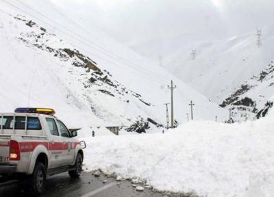 نجات 5 نفر در ریزش بهمن جاده کرج - چالوس