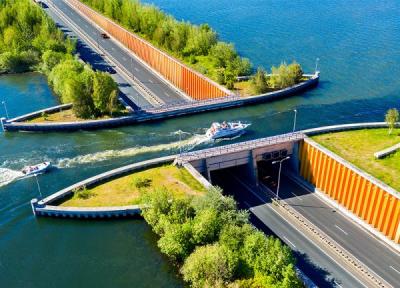 پل ولوومیر هلند یک پل زیبا است که وقتی از بالا مشاهده می کنید انگار یک توهم نوری ایجاد می گردد. در حقیقت، جاده زیر 3 متر آب به مدت 25 متر ادامه می یابد تا دوباره به طرف دیگر ظاهر گردد. این طراحی منحصر به فرد به جریان دائمی ترافیک جاده ای اجازه می دهد که قایق...