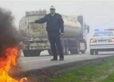 عکسی از افسر پلیس که در کنار آتش در حال هشدار به رانندگان است، مورد توجه کاربران و رسانه ها قرار گرفته است.