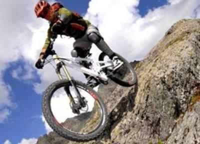 یک دوچرخه سوار حرفه ای در کنار پرتگاه تعادلش را حفظ می نماید.